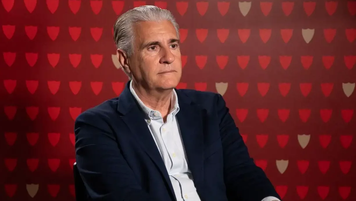 Antonio Cordón, director de fútbol profesional del Sevilla FC, haciendo declaraciones en una entrevista.| Imagen: X.