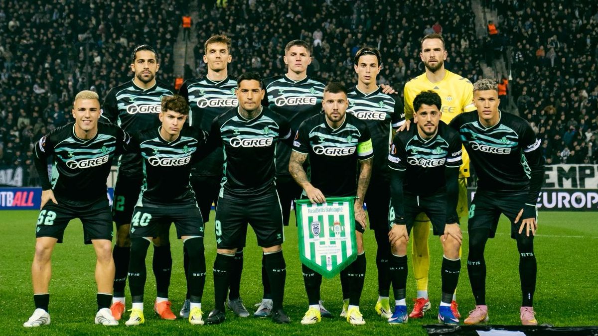 Once titular del Betis posando antes del partido contra el PAOK. | Imagen: perfil de X @RealBetis.