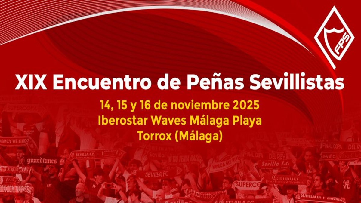 Fin de semana sin fútbol de Primera División, pero de mucho sevillismo el que se vivirá en tierras malagueñas. Como ya viene siendo costumbre en estas fechas, la Federación de Peñas del Sevilla FC volverá a realizar su tradicional Encuentro de Peñas sevillistas, que este año tendrá el Iberostar Waves Málaga Playa de Torrox como escenario. El evento, que vivirá su 19ª edición, reunirá a un gran número de sevillistas de distintos puntos de España.