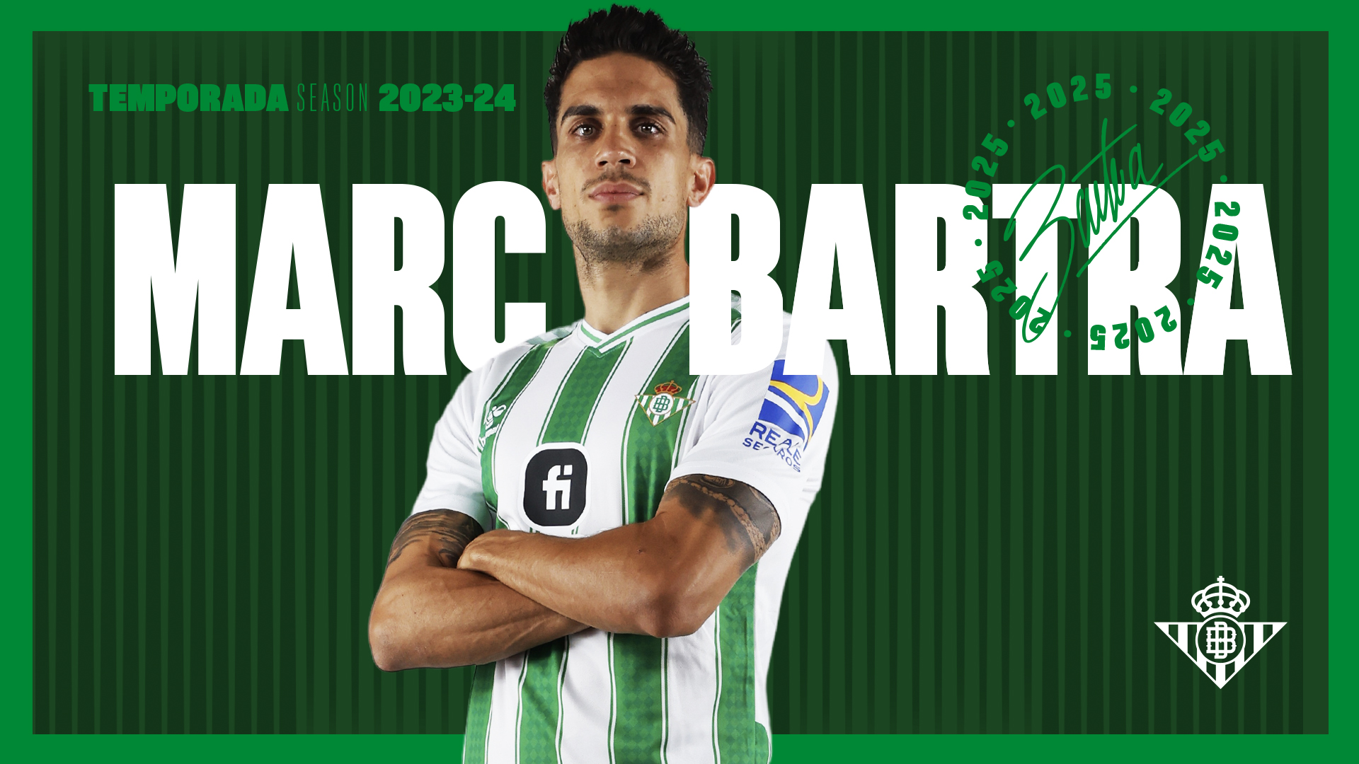 Marc Bartra defenderá los colores del Betis una temporada más. La entidad verdiblanca ha oficializado este mediodía su renovación hasta el próximo mes de junio de 2025. El catalán regresó al club el pasado mercado de fichajes tras pasar de forma efímera por el fútbol turco. Tras una temporada prácticamente en blanco por su lesión en el tendón de Aquiles de su pierna derecha, aspira a volver a consolidarse como un hombre importante en la zaga de Manuel Pellegrini como uno de los capitanes del Betis.