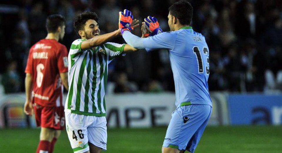 Dani Ceballos y Antonio Adán en un partido frente al Girona CF | Imagen: Perfil de X del Real Betis